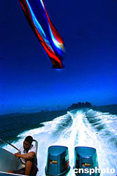 2月中旬的泰國布吉島上風平浪靜,游船劃破海面上賤起長長浪花,使寧靜的大海多了幾分壯觀。海嘯地震過后,到這里旅游的客人日益增多,當地旅游業(yè)正在逐步復蘇。作者:宋吉河
