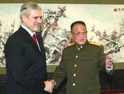 中國(guó)國(guó)防部長(zhǎng)曹剛川二月二十二日在北京會(huì)見(jiàn)塞爾維亞和黑山的塞爾維亞共和國(guó)總統(tǒng)鮑里斯·塔迪奇。作者:滿會(huì)喬