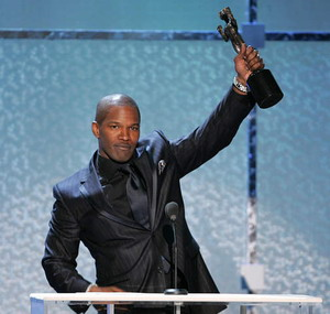 今年無疑是屬于杰米?怂沟囊荒,除了以《雷》片入圍奧斯卡影帝外,他還以《借刀殺人》提名奧斯卡最佳男配角獎(jiǎng),表現(xiàn)極為耀眼。而靈歌王雷-查爾斯生前最后的專輯在本月舉行的格萊美頒獎(jiǎng)禮上獲得八項(xiàng)大獎(jiǎng),也為杰米?怂箚柖W斯卡小金人增添了砝碼。