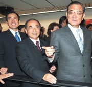 國民黨昨天推出大陣仗接機(jī),黨務(wù)干部從秘書長林豐正、一級(jí)主管們通通到場,副主席有王金平、馬英九、林澄枝,另三位副主席江丙坤、蕭萬長及吳伯雄都未到,但吳伯雄的兒子、新科“立委”吳志揚(yáng)代表前往接機(jī)。