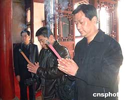 2月23日,中新社記者“探尋鄭和之路”活動正式啟動,中新社蘇州支社社長韓勝寶、攝影記者蔣振江第一站來到太倉瀏河天妃宮媽祖廟祭拜媽祖。作者:蔣振江
