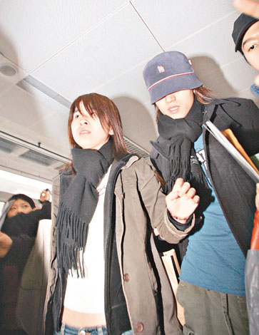 昨午十二時五十分,機(jī)場離境大堂的顯示牌顯示言承旭所乘班機(jī)的搭客該由離境大堂的B閘步出,豈料他卻在A閘出現(xiàn),過百名在B閘等候已久的歌迷獲悉后,即以極速從B閘飛奔到A閘迎接,期間他們更一邊跑一邊大叫偶像名字,場面十分震撼。言承旭一貫地頭戴漁夫帽,面帶笑容表現(xiàn)友善,不時回頭向歌迷報以微笑。