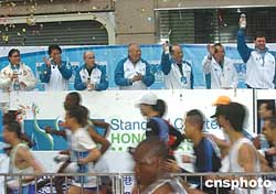 香港特區(qū)行政長官董建華為比賽起跑鳴槍。作者:趙振清