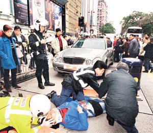 袁潔瑩昨晨十一時許,駕駛銀色平治房車沿漆咸道南向尖沙咀行駛,途至金馬倫道對開交通燈位時,一名五十二歲菲籍女子突然由行人路道走出欲過馬路,F(xiàn)ennie剎車不及將對方撞倒地上,她立即停車報警。