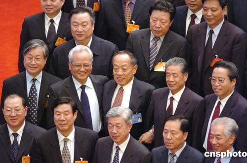十屆全國(guó)人大三次會(huì)議第四次全體大會(huì)三月十三日上午在北京人民大會(huì)堂舉行,列席會(huì)議的部長(zhǎng)們會(huì)后在大會(huì)主席臺(tái)前合影留念。作者:陳文
