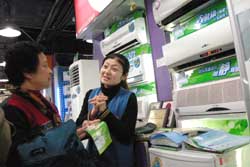 三月十四日,顧客在鄭州的家電市場選購空調。有消息說,亞洲鐵礦石四月起將漲價百分之七十一點五,會對汽車、機械制造、房地產、造船、輕工、家電等行業(yè)產生影響,特別是對市場競爭激烈的空調產品影響較大。很多消費者認為白色家電漲價只是時間問題,因而促使部分有潛在購買需求的消費者提前釋放購買力。作者:慎重