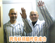 生命的希望從海峽傳來(lái)了。二00四年八月,在劉忠祥等志愿者和徐州市相關(guān)部門的努力下,遠(yuǎn)在臺(tái)灣花蓮市的世界最大的華人骨髓資料庫(kù)——臺(tái)灣慈濟(jì)骨髓干細(xì)胞中心在對(duì)骨髓庫(kù)進(jìn)行檢索后找到了與張猛、李懷剛基因相符的配型。經(jīng)過兩岸工作人員最細(xì)致的篩選,兩名年齡分別為二十二歲和三十三歲的臺(tái)灣女青年被確定為最終的配對(duì)者。張猛和李懷剛的生命重燃希望。