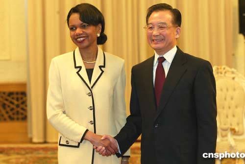 溫家寶在會見賴斯時說,“您是春分時節(jié)來訪,春分是播種的季節(jié),希望您的訪問為中美友誼播下新的種子。”