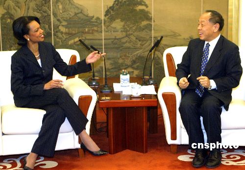 同日,中國國務委員唐家璇會見了賴斯。唐家璇說,處理好中美兩國關(guān)系需要增強相互理解和互信。中方愿與美方共同努力,牢牢把握合作這條主線,妥善處理分歧,共同維護和促進亞太地區(qū)乃至世界的和平、穩(wěn)定和繁榮。