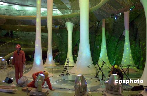 日本愛知世博會(huì)即將開幕,中國(guó)館內(nèi)工作人員三月二十一日對(duì)館內(nèi)的主造型《生命之樹》進(jìn)行最后整備。作者:王健
