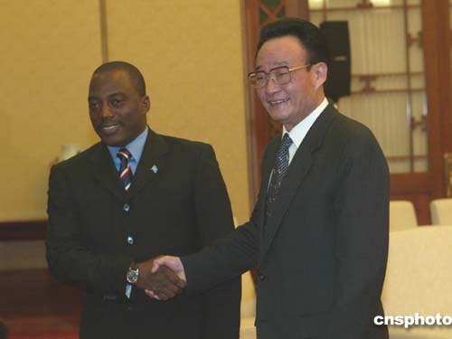 圖:吳邦國(guó)會(huì)見(jiàn)剛果民主共和國(guó)總統(tǒng)卡比拉