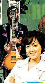 范曉萱主持的節(jié)目最后一集錄像,男友“雞腿飯”樂團(tuán)主音Allen特地前來捧場,在一群人中間拍合照,臉上的落腮胡已經(jīng)遮去一半臉頰,沒想到閃光燈一閃,他還害羞的拿起手邊的吉它遮去整張臉,留下極有趣的鏡頭。