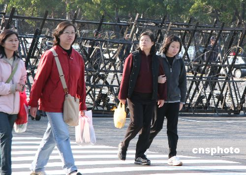 在“三一九”槍擊案屆滿一周年的3月19日,臺(tái)灣泛藍(lán)陣營(yíng)在臺(tái)北舉行“要真相、要民主、要和平”大游行。警方出動(dòng)數(shù)千警力加強(qiáng)戒備。圖為幾名行人走過(guò)警方在凱達(dá)格蘭大道設(shè)置的鐵籠和拒馬。作者:董會(huì)峰