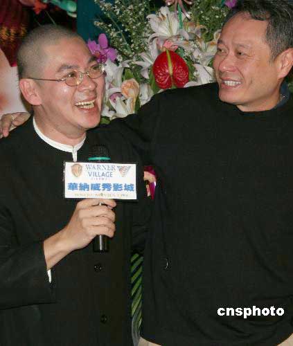 獲柏林電影節(jié)銀熊獎(jiǎng)的影片《天邊一朵云》在全臺(tái)公映。該片因有暴露的性愛鏡頭而引起一些爭(zhēng)議。圖為3月18日晚,曾獲奧斯卡獎(jiǎng)的名導(dǎo)演李安(右)在臺(tái)北出席該片首映式時(shí),與該片導(dǎo)演蔡明亮相見甚歡。作者:董會(huì)峰