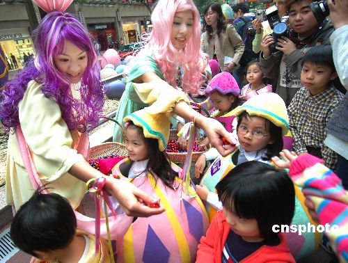 銅鑼灣的時代廣場,早些天即出現(xiàn)了一個由五百只不同大小的復活蛋組成的“蛋花園”,復活節(jié)期間還將有小朋友打扮成小蛋人進行快樂“數(shù)蛋秀”。