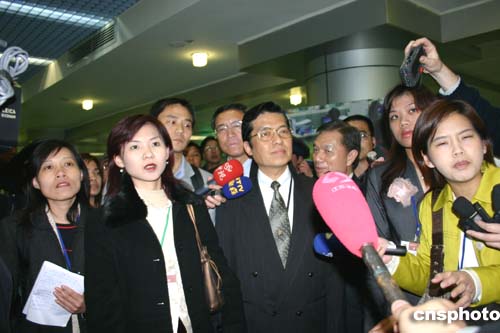 國民黨新聞發(fā)言人張榮恭在機場接受記者采訪