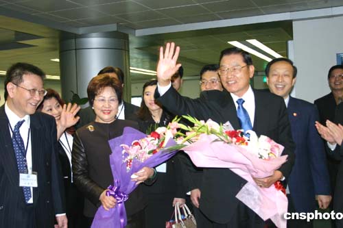 圖:國民黨副主席江丙坤抵廣州訪問受到熱烈歡迎
