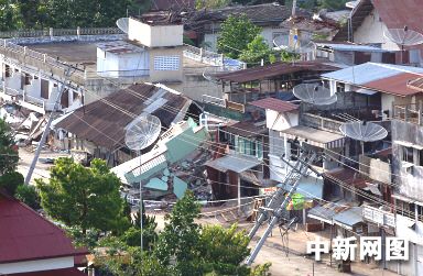 印度尼西亞蘇門答臘島附近海域28日深夜發(fā)生里氏8.5級強烈地震,目前至少有430人已被證實在地震中死亡,其中震中附近的尼亞斯島有320人死亡。圖為印尼蘇門答臘島北部尼亞斯島的房屋遭到毀壞。