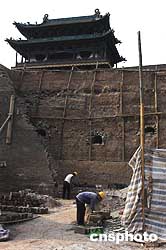 去年十月十七日下午,山西省平遙縣古城南門東側(cè)外墻突然發(fā)生墻體倒塌,倒塌范圍長十七米,高十多米,倒塌厚度為三米。古城墻坍塌修復(fù)方案去年底已經(jīng)通過國家文物保護(hù)專家的論證,并報(bào)請國家文物保護(hù)管理部門批準(zhǔn)。