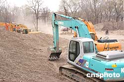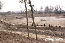 | 中國(guó)國(guó)家環(huán)保總局日前聲明,圓明園湖底鋪設(shè)防滲膜工程至今未進(jìn)行建設(shè)項(xiàng)目環(huán)境影響評(píng)價(jià),應(yīng)該立即停止建設(shè),充分征詢社會(huì)各界的意見,依法補(bǔ)辦環(huán)境影響評(píng)價(jià)審批手續(xù)。三月三十一日,投資1億元,持續(xù)數(shù)個(gè)月的2000余畝圓明園湖底(鋪塑料)防滲水工程開始停工。圖為圓明園福海西側(cè)一角藏龍臥虎,大型機(jī)械余熱方盡。但是,圓明園三園(包括長(zhǎng)春園、綺春園),約2000余畝湖底防滲工程已基本鋪設(shè)完成了防滲水塑料,令專家和百姓失望。作者:鄒憲