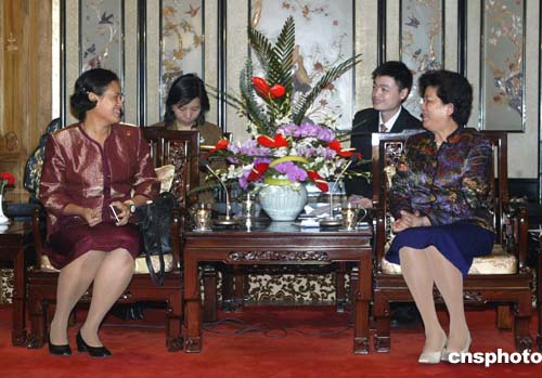 四月三日晚,國(guó)務(wù)委員陳至立在北京會(huì)見(jiàn)了來(lái)訪的泰國(guó)公主詩(shī)琳通。作者:廖文靜