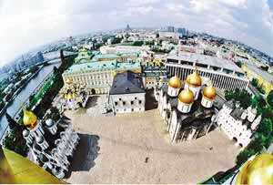 攝像機(jī)在克里姆林宮上空俯拍這一事實(shí)本身就非同尋常。盡管克里姆林宮也對(duì)外開(kāi)放,但游客們只能自由進(jìn)入兵器館、國(guó)立克里姆林宮、教堂廣場(chǎng)、教堂博物館,觀看“炮王”等景點(diǎn),其他地方不能接近,更不允許攜帶攝像設(shè)備。