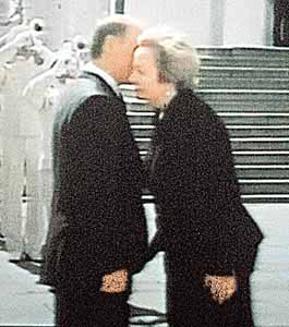 鏡頭三:這是普京夫婦,在盡量小聲地竊竊私語(yǔ)。他們什么話都沒(méi)說(shuō),但兩人的姿勢(shì)比任何話語(yǔ)都美觀,從這個(gè)創(chuàng)紀(jì)錄的鏡頭上可以清楚地看到這一點(diǎn)。