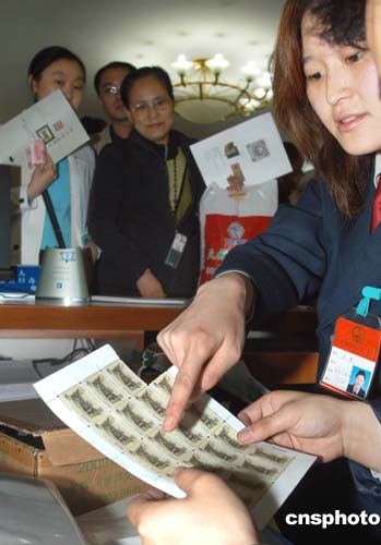 四月五日,新中國第一套地方版印花稅票《北京印花稅票之一北京胡同》在北京市各區(qū)縣地稅局向社會發(fā)售。此套印花稅票有九種面值,由北京市地方稅務(wù)局發(fā)行、國家郵政局郵票印制局印制,極具收藏價值。圖為北京市東城區(qū)地稅局工作人員展示新舊兩版印花稅票,圖右為新版印花稅票。作者:張宇