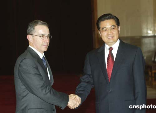 中新社北京四月六日電(記者李靜)中國(guó)國(guó)家主席胡錦濤六日與來(lái)華進(jìn)行國(guó)事訪問(wèn)的哥倫比亞總統(tǒng)烏里韋一致同意,進(jìn)一步擴(kuò)大兩國(guó)各領(lǐng)域交流與合作,努力開(kāi)創(chuàng)新世紀(jì)中哥友好合作關(guān)系新局面。