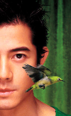 拍攝當(dāng)日,上海正值嚴(yán)寒夜,偌大的影樓更顯得寒氣逼人,當(dāng)人人身穿羽絨,唯獨城城背心一度,把他冷得手腳僵硬,大家見狀,急忙張羅暖風(fēng)機圍著“城城”,讓他取暖。原本有準(zhǔn)備長袖綠衣造型,但愛漂亮的“城城”堅決穿背心上陣。至于何以選用綠色與青鳥作今次海報的主調(diào)?“阿叔”表示:“因為綠色是今年流行的顏色,至于青鳥,可以是喜鳥,也可以是躍動,可以有好大想象空間。”拍攝時,“城城”坐在綠布幕前,加上燈光營造,他仿如綠翡翠般亮麗,甚具王者氣派。