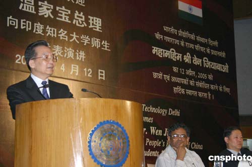 中新社新德里四月十二日電(記者齊彬)中國國務(wù)院總理溫家寶今天來到印度德里理工大學(xué),向近千名印度知名大學(xué)的師生發(fā)表題為《攜手并進 共創(chuàng)未來》的演講,并回答了學(xué)生們的提問。