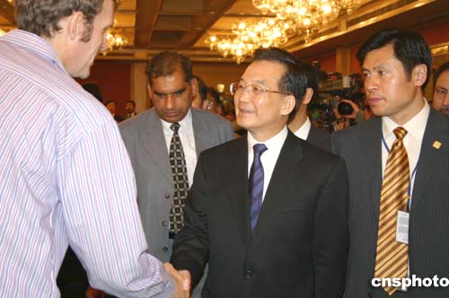 時間過得很快,坐在溫家寶面前的新德里電視臺總裁屢屢舉手,卻得不到提問機(jī)會。在回答完上一個問題后,溫家寶對主持見面會的中國駐印度大使孫玉璽說,“讓這位先生問一個問題吧!”但這位先生顯然有備而來,一口氣提出了四個問題,包括中國究竟什么時候調(diào)整人民幣匯率、中國如何歡迎來自印度的投資等。