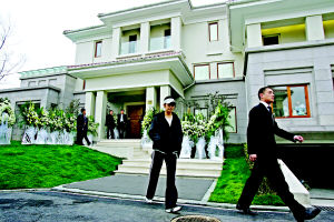 陳逸飛的靈堂就設(shè)置在他剛裝修完工的別墅里。陳逸飛的別墅是一幢歐美風(fēng)格的建筑。乳黃色的墻面和紅色的瓦,顯得雍容華貴。他在2002年花費(fèi)了800萬左右買下了這所住宅,去年年底裝修完畢。
