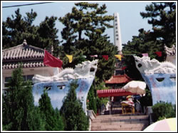 劉公島的主峰叫旗頂山,海拔153米,海島四周巖石裸露,島上峰巒疊翠,景色優(yōu)美,空氣清新,素有"海上桃源"之稱。"千里絕塵埃,此間即洞天"是劉公島最好的寫照。沿環(huán)山路繞島而行,不僅可以參觀各景點,還可飽覽海天一色的美麗風光。