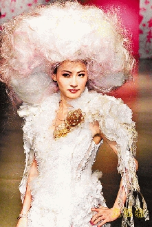張柏芝以三個(gè)不同造型演出,其中以維多利亞宮廷服飾配襯大鬈曲假發(fā)最為搶鏡。
