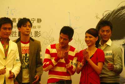 演員陣容強大的《三岔口》早在今年的香港電影節(jié)上放映時就引起了很多媒體及業(yè)內(nèi)人士的關(guān)注和贊揚,而此次的大舉進京也可見導(dǎo)演及眾明星對影片的重視。不過最敬業(yè)的要數(shù)李心潔了,記者發(fā)現(xiàn)每當(dāng)她走動的時候都要由工作人員攙扶,問其原因才知道是腳崴了。在表示現(xiàn)在已無大礙后,她還笑稱,在拍戲的時候幾位男士也都很有風(fēng)度,“爭搶”著要求攙扶她,也讓她很是感動。