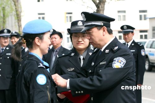 中新網4月21日電 據人民公安報消息,公安部日前在河北廊坊中國維和民事警察培訓中心舉行儀式,為首批赴海地維和警察防暴隊120名隊員頒發(fā)中國維和警察榮譽章。這是公安部首次向維和警察頒發(fā)榮譽章。