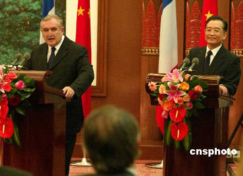 今天上午剛剛抵達(dá)北京的拉法蘭,在與中國(guó)國(guó)務(wù)院總理溫家寶舉行了兩個(gè)多小時(shí)的會(huì)談后,共同會(huì)見(jiàn)記者。拉法蘭說(shuō),法國(guó)在歐盟解除對(duì)華軍售禁令問(wèn)題上的立場(chǎng)是清晰的,將繼續(xù)為此作出努力。