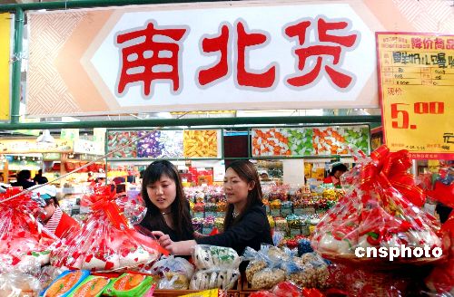 “五一”黃金周將至,北京商業(yè)部門(mén)為節(jié)日準(zhǔn)備了充足的商品。4月29日,崇文門(mén)菜市場(chǎng)內(nèi)來(lái)自全國(guó)各地的特色食品琳瑯滿(mǎn)目,供顧客選購(gòu)。作者:李樹(shù)貴