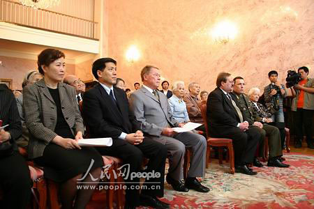 中新網(wǎng)4月30日電 俄羅斯駐中國(guó)大使羅高壽29日向?yàn)樘K聯(lián)衛(wèi)國(guó)戰(zhàn)爭(zhēng)做出貢獻(xiàn)的27名中國(guó)人頒發(fā)了“1941-1945年偉大衛(wèi)國(guó)戰(zhàn)爭(zhēng)勝利60周年”紀(jì)念章。獲得紀(jì)念章的27人包括:毛澤東之子毛岸青、劉少奇之女劉愛琴、朱德之女朱敏等。