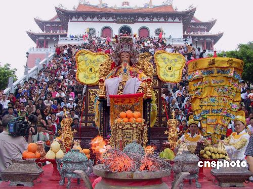 獨(dú)具特色、內(nèi)涵豐富的媽祖文化,對世界華人華僑具有很強(qiáng)的凝聚力,兩億多信眾遍布世界各地,尤其在臺灣,媽祖信眾占其總?cè)丝诘娜种?/p>