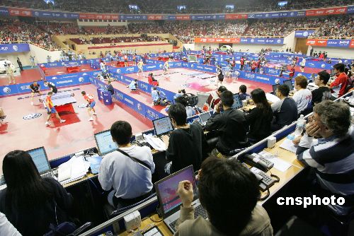 五月一日,第四十八屆世乒賽在上海體育館正式拉開戰(zhàn)幕,本次世乒賽不僅參賽人數(shù)歷屆最多,而且進(jìn)行報道的中外記者也“規(guī)?涨啊薄W髡撸簻珡┛