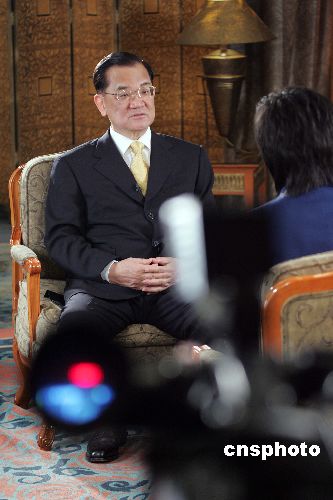 圖:連戰(zhàn)接受大陸媒體采訪