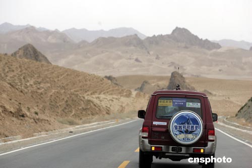中新網(wǎng)5月3日電 二零零五年五月三日,穿越可可西里聯(lián)想鋒行探險(xiǎn)隊(duì)車隊(duì)抵達(dá)北京——拉薩的109國(guó)道2500公里處。