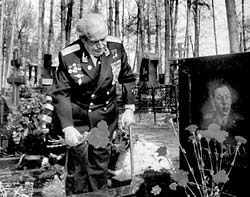 “當(dāng)天,我對(duì)韃靼斯坦總統(tǒng)沙伊米耶夫說,我到瓦夏墓地去了,在出生證和護(hù)照上,他一直都是‘斯大林’,這里卻寫著‘朱加什維利’。沙伊米耶夫說,這是根據(jù)赫魯曉夫的指示改的姓,明天我們一起去墓地吧,我要代表我們?nèi)嗣裣蛩麄儍晌挥⑿劬瞎,是他們以生命為代價(jià)把我們從法西斯魔爪中解救出來的!