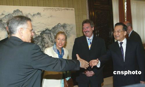 溫家寶是在會(huì)見(jiàn)歐盟“三駕馬車(chē)”外長(zhǎng),歐盟輪值主席國(guó)盧森堡副首相兼外交與移民問(wèn)題大臣阿瑟伯恩、歐盟委員會(huì)對(duì)外關(guān)系委員瓦爾德納和歐盟候任主席國(guó)英國(guó)外交大臣的代表時(shí)作上述表示的。