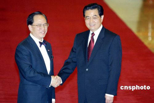 圖:胡錦濤會見財富論壇VIP嘉賓曾蔭權(quán)