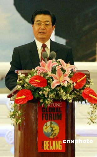 圖:胡錦濤在《財(cái)富》全球論壇開幕式上作主題演講