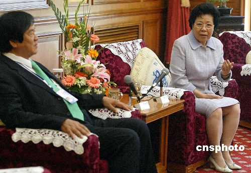 五月十九日,國務(wù)院僑務(wù)辦公室主任陳玉杰在北京會見了參加二○○五北京《財富》全球論壇的華商代表。作者:廖文靜