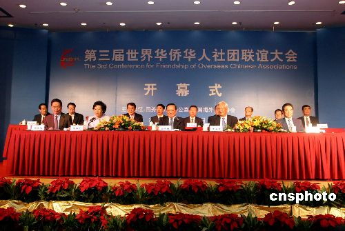 以“增進(jìn)共識(shí)、凝聚力量、反對(duì)臺(tái)獨(dú)、促進(jìn)統(tǒng)一”為宗旨的第三屆世界華僑華人社團(tuán)聯(lián)誼大會(huì)五月十九日在北京隆重召開。國務(wù)委員唐家璇出席大會(huì)并講話,全國政協(xié)副主席羅豪才出席了大會(huì)。作者:張勤